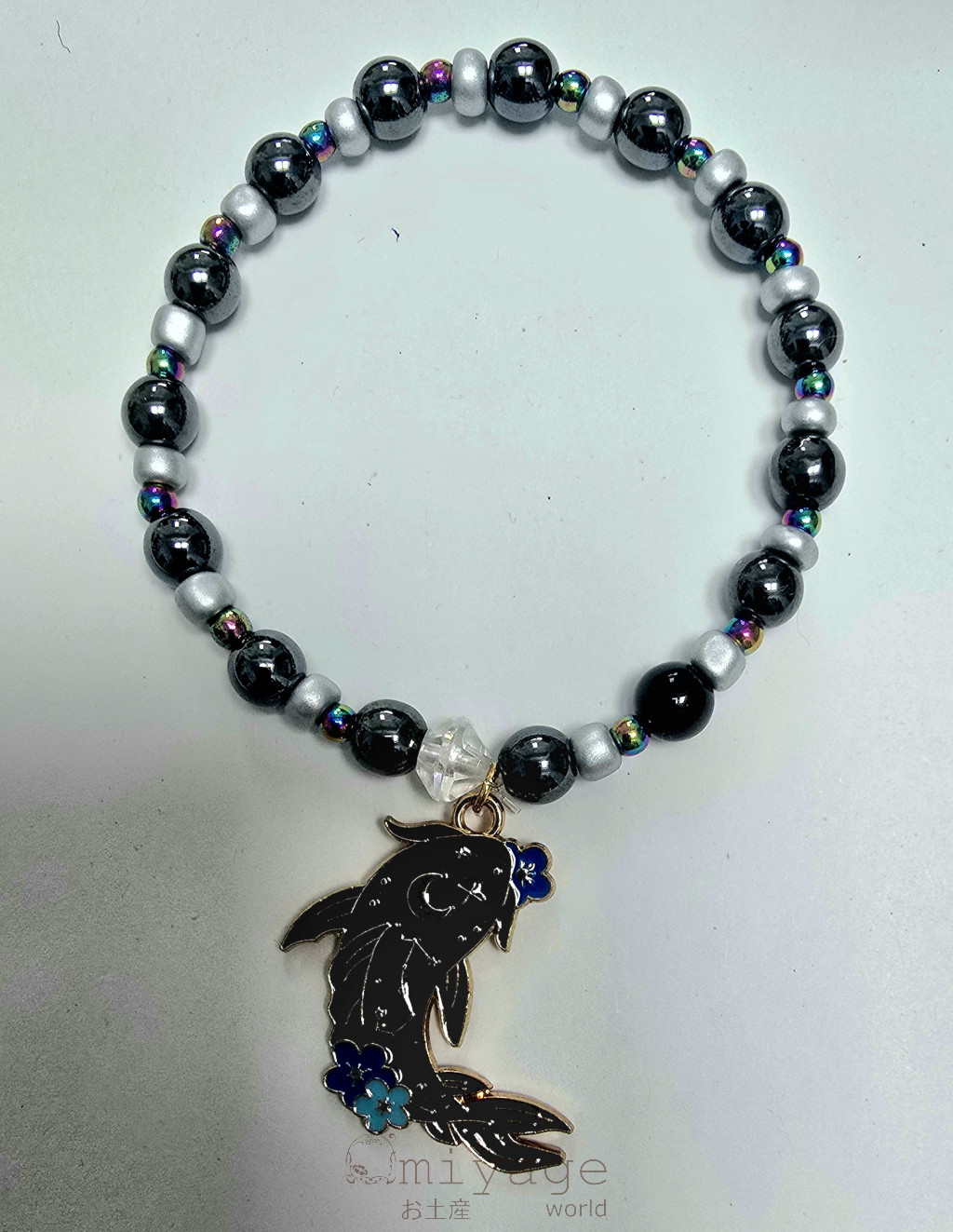 Ez a gyönyörű karkötő eredeti ásványgyöngyök és finom japán Miyuki gyöngyök kombinációjából készült, amelyek harmóniát és eleganciát sugároznak. A részletekben gazdag designhoz egy mutatós függő dísz ad különleges hangsúlyt.