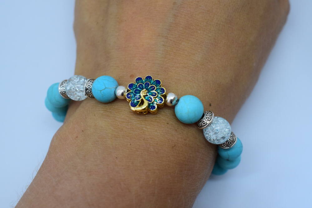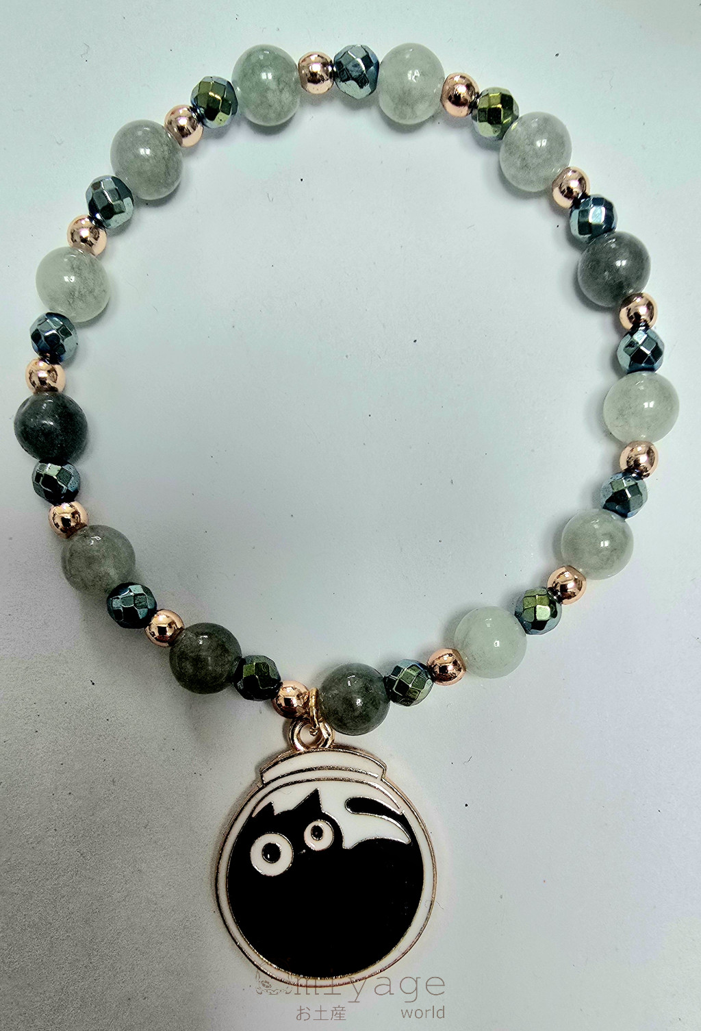 Ez a gyönyörű karkötő eredeti ásványgyöngyök és finom japán Miyuki gyöngyök kombinációjából készült, amelyek harmóniát és eleganciát sugároznak. A részletekben gazdag designhoz egy mutatós függő dísz ad különleges hangsúlyt.