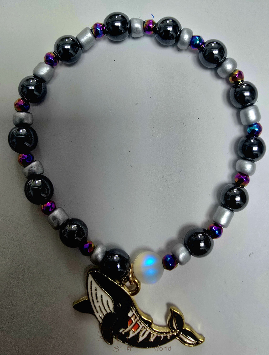Ez a gyönyörű karkötő eredeti ásványgyöngyök és finom japán Miyuki gyöngyök kombinációjából készült, amelyek harmóniát és eleganciát sugároznak. A részletekben gazdag designhoz egy mutatós függő dísz ad különleges hangsúlyt.