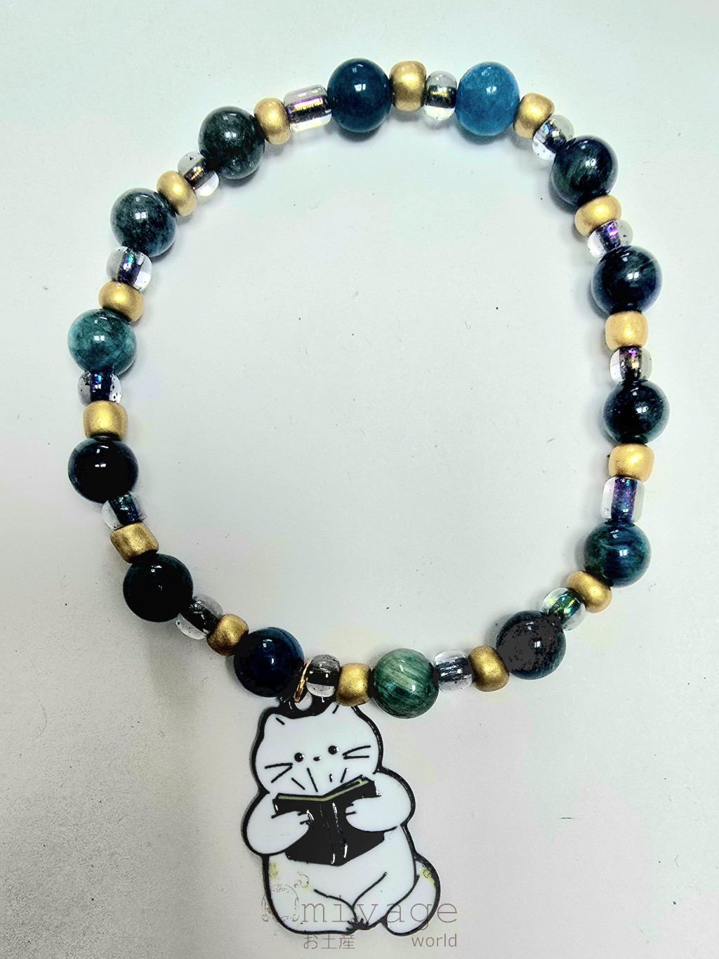 Ez a gyönyörű karkötő eredeti ásványgyöngyök és finom japán Miyuki gyöngyök kombinációjából készült, amelyek harmóniát és eleganciát sugároznak. A részletekben gazdag designhoz egy mutatós függő dísz ad különleges hangsúlyt.